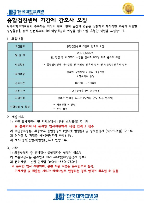 종합검진센터 기간제 간호사 모집 페이지 정보 작성자 | 김혜원 작성일 | 작성일22-11-15 16:25 조회 | 16,893회 댓글 | 0건 관련링크 이전글 다음글 목록 본문 이전글 다음글 목록