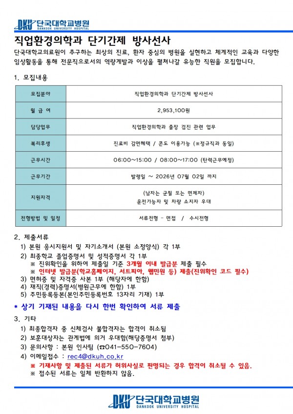 직업환경의학과 단기간제 방사선사