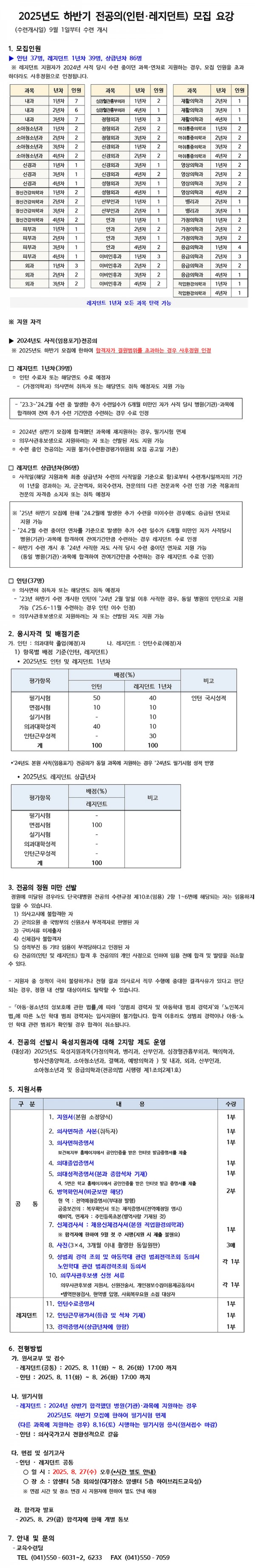 2025년도 하반기 전공의(인턴·레지던트) 모집 요강