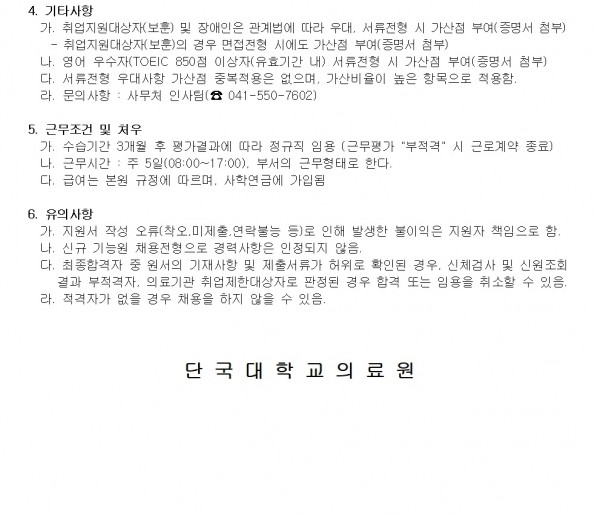 2026학년도 정규직(신규) 기능직(간호조무사) 채용 > 병원소개 > 병원소식 > 채용공고 | 사랑이 숨쉬는 인술의 요람 - 단국대학교병원 홈페이지입니다.