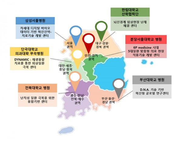 ‘혁신형 미래의료연구센터’는 의과대학 소속 진료의사(MD)와 이공계 분야 연구자(Ph.D.) 간의 공동연구를 지원함으로써 병원에서 의사과학자를 육성할 수 있는 환경을 조성하기 위해 마련된 사업이다. 과기정통부가 전국을 6개 권역으로 나누어 공모와 평가를 실시한 결과, 대전·세종·충남·충북 권역은 단국대병원, 서울 권역에서는 삼성서울병원, 인천·경기 권역은 분당서울대학교병원, 대구·강원·경북은 한림대학교 산학협력단, 부산·울산·경남 권역은 부산대학교병원, 광주·전남·전북·제주 권역은 전북대학교병원이 선정됐다. 전국적으로 유수의 연구중심병원들이 공모에 참여해 최대 20:1의 경쟁률을 기록했다.