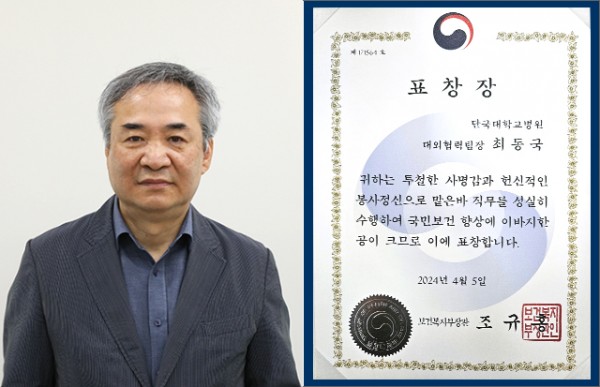 대외협력팀 최동국 팀장이 지난 4월 5일 충남도민의 보건 향상에 기여한 공로를 인정받아 보건복지부장관 표창을 수상했다.