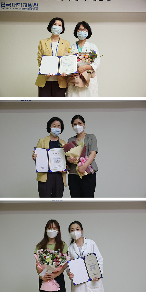 총 5편의 발표 논문 가운데 ‘COVID-19 중환자를 돌보는 간호사들의 경험’에 대해 발표한 특수간호팀 중환자실이 최우수상을 수상했으며, ‘간호사의 투약오류 실태 조사 및 감소 방안’에 대해 발표한 모아간호팀 11병동이 우수상을, ‘일개 대학병원에서의 일반병동 간호사와 간호·간병통합서비스 병동 간호사의 간호업무량 비교 연구’에 대해 발표한 외과간호팀 42,43병동이 장려상을 수상했다.