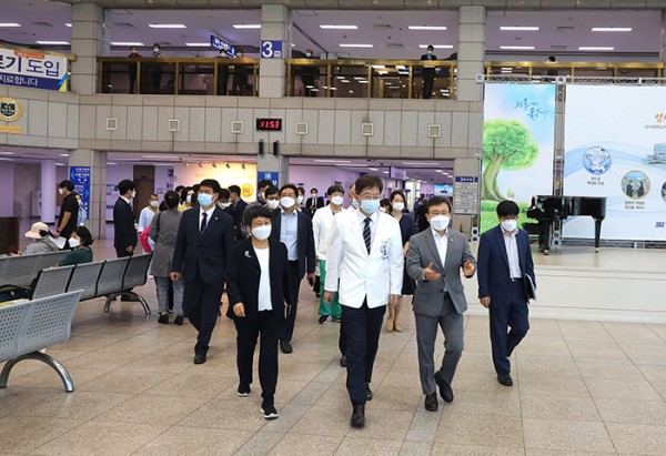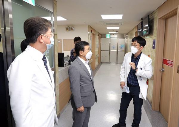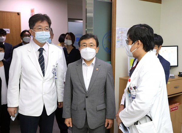 권덕철 보건복지부 장관이 9월 15일(수) 단국대병원(병원장 김재일)을 방문해 추석 연휴를 대비한 응급진료 현황을 점검하고, 관계자들을 격려하였다.
