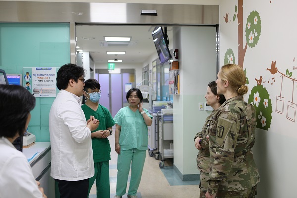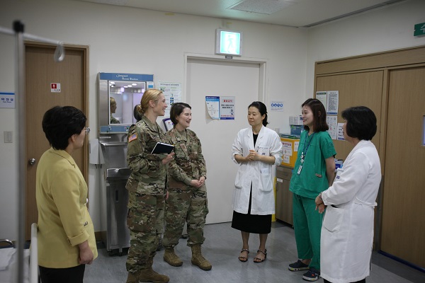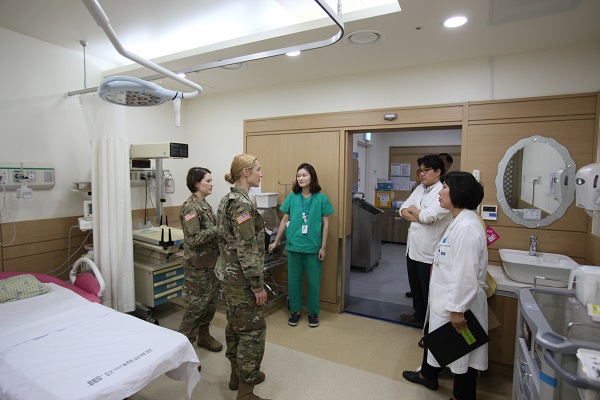 지난 7월 18일 주한미군부대 용산 미군병원의 Maj Morgia외 산부인과 의료진들이 단국대병원을 방문했다. 이번 방문은 오는 9월부터 11월까지 3개월간 용산 미군병원이 평택 험프리 부대로 이전함에 따라 다수의 미군과 미군 가족 중에서 임산부들이 이용하게 될 산부인과 병동, 병실, 분만장, 가족분만실(LDR), NICU 등 산부인과 관련 부서를 둘러보기 위해 이루어졌다.