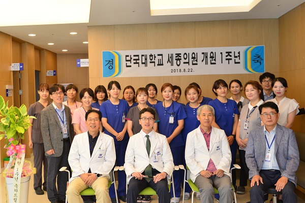 단국대학교 세종의원이 8월 22일 병원 로비에서 개원 1주년 기념식을 열었다. 이날 행사는 박창현 원장과 직원 20여 명이 참석해 세종시민의 건강지킴이 역할을 충실히 할 것을 다짐하며 개원 1주년 축하의 의미를 다함께 나눴다. 기념식에서 박창현 원장은 “단국대학교 세종의원만의 특성화된 전문 진료과를 포함해 건강검진을 활성화해서 지역사회에 봉사하고 최상의 의료서비스를 제공하는 데 책임을 다하자”고 말했다.