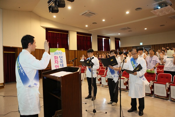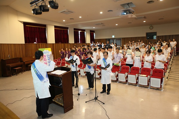 우리 병원은 7월 25일(화) 5층 대강당에서 전 직원이 참여한 가운데 ‘2017년 환자안전의 날’ 행사를 진행했다. 환자안전에 대한 인식을 높이고 안전한 의료환경을 추구하고자 진행된 이번 행사에서 조종태 병원장은 “최근 환자안전 중요성이 강조되고 있으며, 환자안전 중심의 문화를 구축하여 최상의 의료를 제공하는 것이 우리 병원의 사명이므로 핵심가치를 공유하는 소중한 시간이 되기를 바란다”고 전했다.