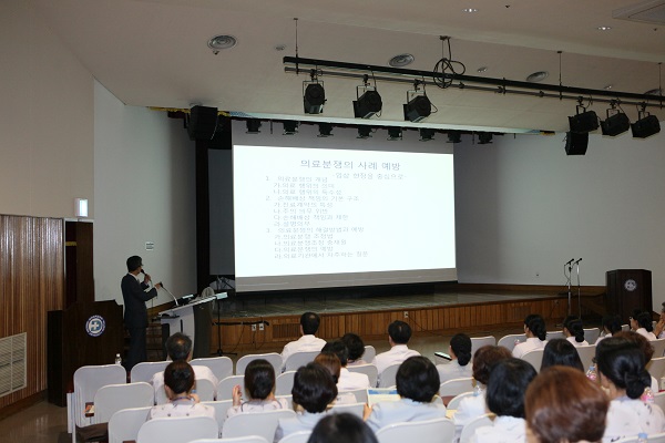 위험관리 및 의료분쟁 예방전략’에 대한 특강을 비롯해 부서별 환자안전 리더로 선정된 37명 중 의사, 간호사 및 진료지원부서의 대표자 3명에 대한 위촉장 수여식이 진행됐다.