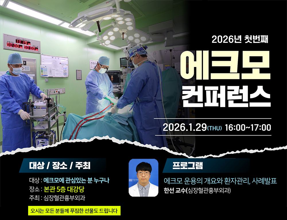 [교육안내] 2026년 첫번째 에크모 컨퍼런스 > 병원소개 > 병원소식 > 공지사항 | 사랑이 숨쉬는 인술의 요람 - 단국대학교병원 홈페이지입니다.