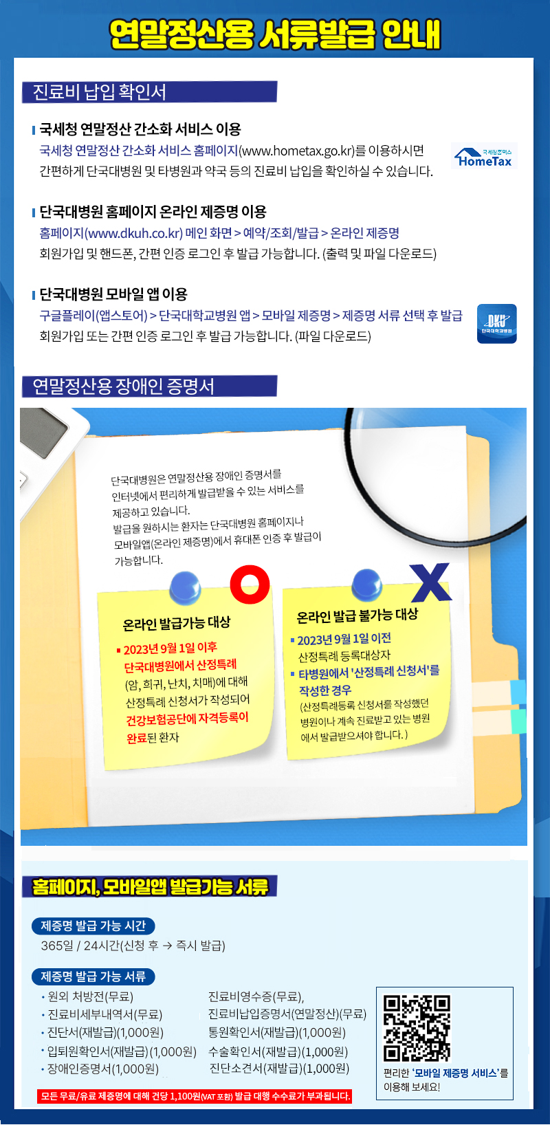 연말정산용 서류발급 안내입니다