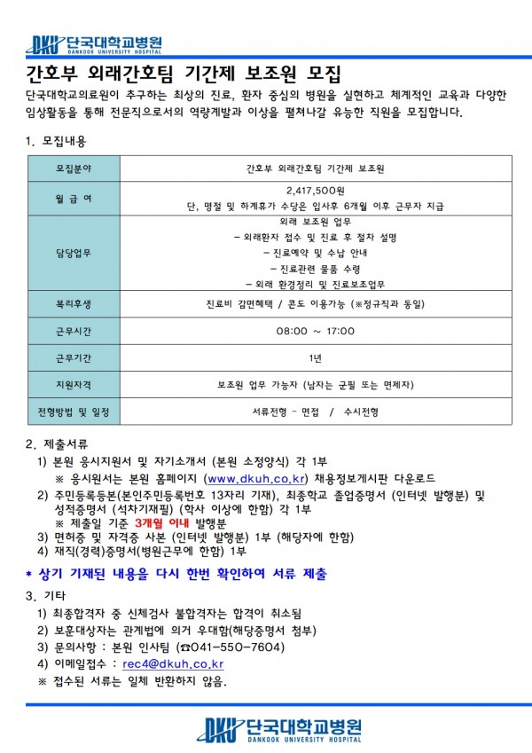 간호부 외래간호팀 기간제 보조원 모집