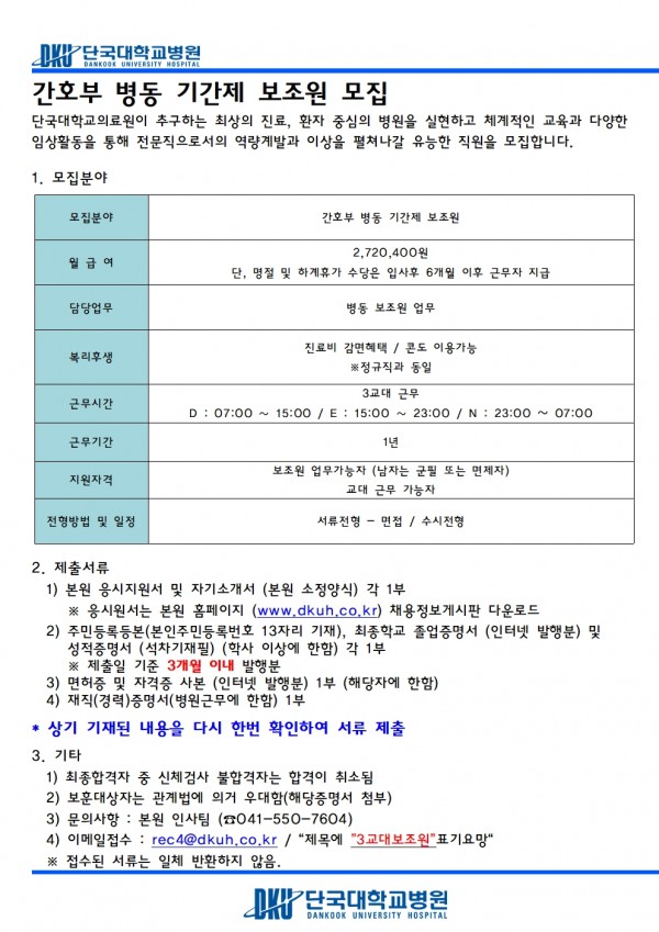 간호부 병동 기간제 보조원 모집(3교대)