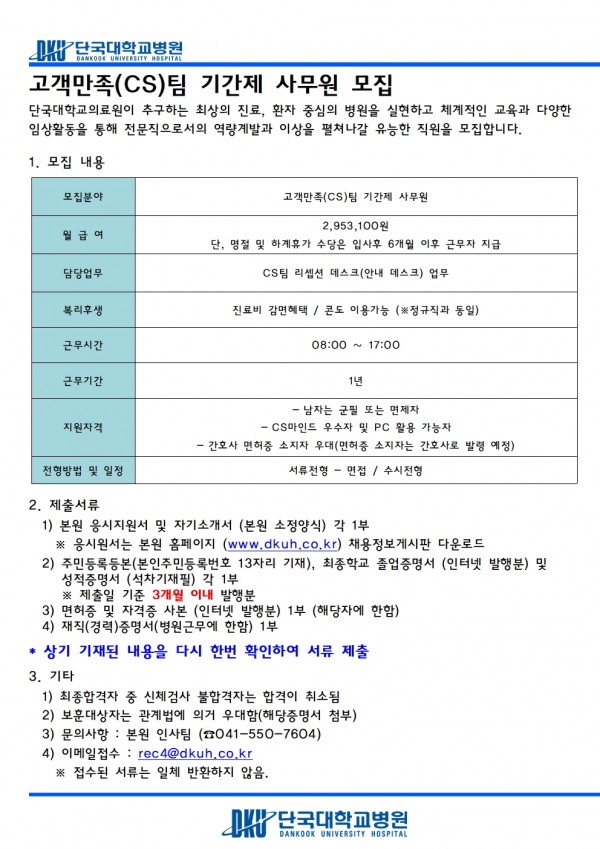 고객만족(CS)팀 기간제 사무원 모집
