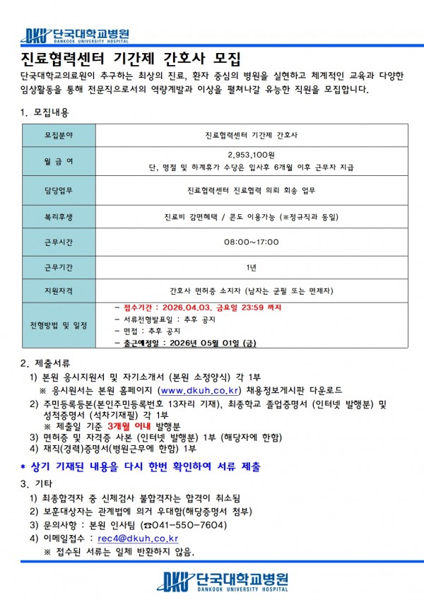 진료협력센터 기간제 간호사 모집
