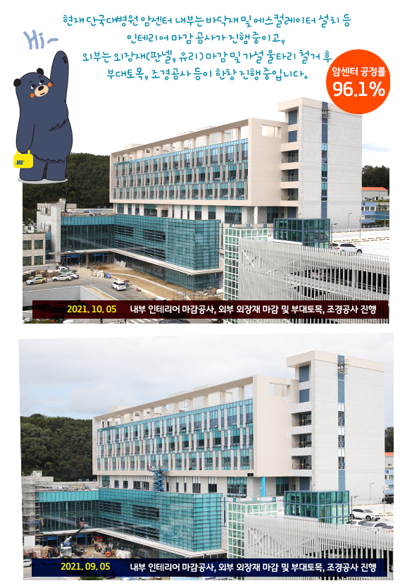 단국대학교병원 암센터 건립 현황(2021. 10. 05 현재) 페이지 정보 작성자 | 작성일 |2021-10-05 00:00 조 회 |2,773회 댓 글 |0건 관련링크 이전글 다음글 목록 본문 이전글 다음글 목록