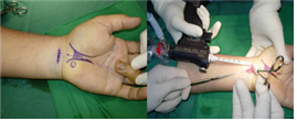 | 정의 및 특징 | 내시경적 손목 터널 절개 수술은 개방형 수술에 비해 상처가 작고 주위 조직 박리가 적어 일상 생활 혹은 직장 복귀가 빠르며 흉터가 적게 남아 술 후 통증이 적고 미용적으로 우수합니다. 또한 내시경을 통해 주위 주요 구조물들을 확인 할 수 있어 신경, 혈관 등의 손상이 거의 없습니다. | ||