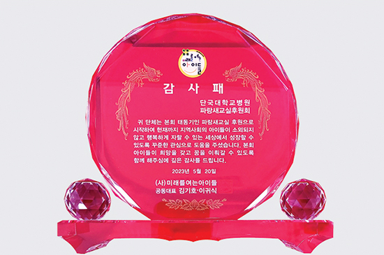 (사)미래를여는아이들, 본원의 지속적 후원에 감사패 전달